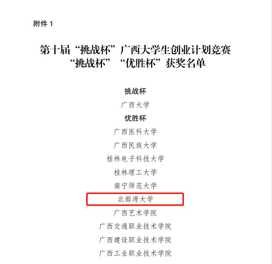 日前,由共青团广西区委、自治区教育厅、自治区科协、广西学联共同主办的第十届“挑战杯”广西大学生创业计划竞赛在南宁圆满结束。经过激烈角逐,beat365官网在比赛中荣获“优胜杯”及优秀组织奖。beat365官网推荐参赛的24个项目中,4个项目获金奖、2个项目获银奖、15个项目获铜奖。