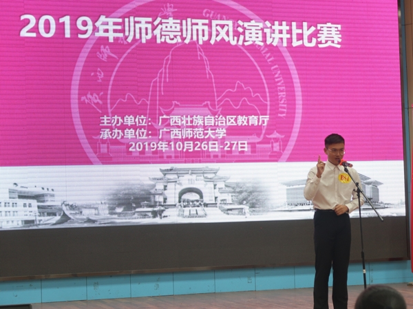 10月27日,广西壮族自治区教育厅主办的2019“立德树人 正风铸魂”师德师风演讲比赛在广西师范大学顺利闭幕。beat365官网教育学院小教本181郑雅丹、资源与环境学院地理本182高宇成同学从51名参赛选手中脱颖而出荣获二等奖。