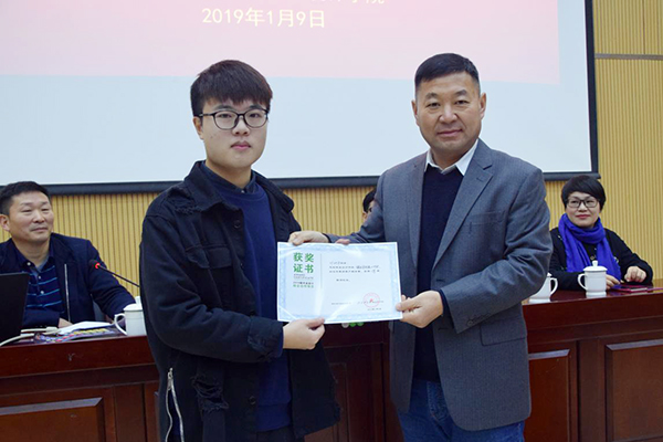 崔松伟董事长为一等奖获得者邓训平颁发奖状