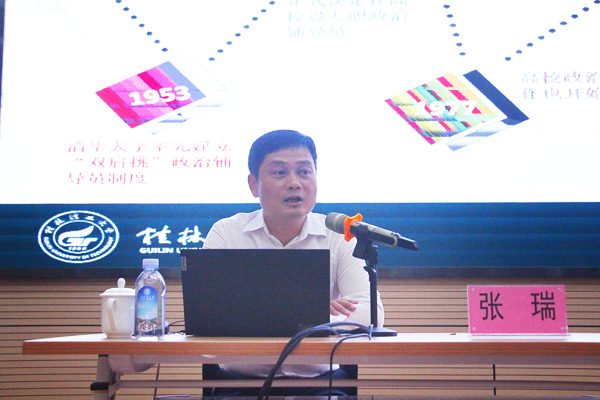 6月9日下午,学校在众创空间301路演厅举办“辅导员工作成果化及科研能力的提升”专题讲座。本次讲座特邀桂林理工大学武装部部长、保卫处处长张瑞教授担任主讲。讲座由beat365官网学(研)工部部长裴以明主持。
