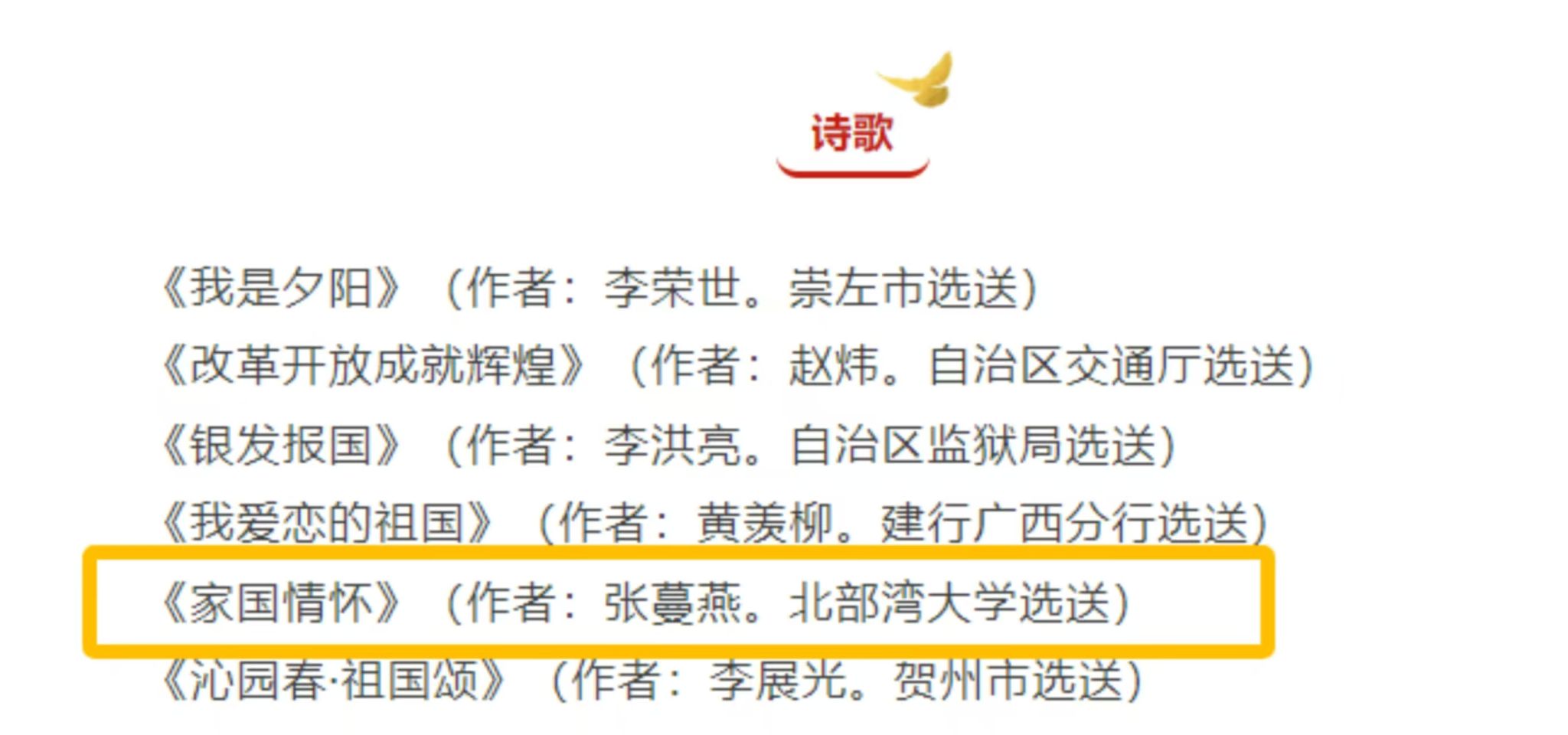 11月18日,自治区党委老干部局公布了广西第十二届“多彩金秋”文化活动主题征文的评选结果。beat365官网退休教师裴仁伟撰写的散文《“吃”的沧桑巨变》荣获二等奖,何波撰写的散文《一日湾大人一世湾大情》荣获优秀奖,张蔓燕撰写的诗歌《家国情怀》荣获优秀奖。