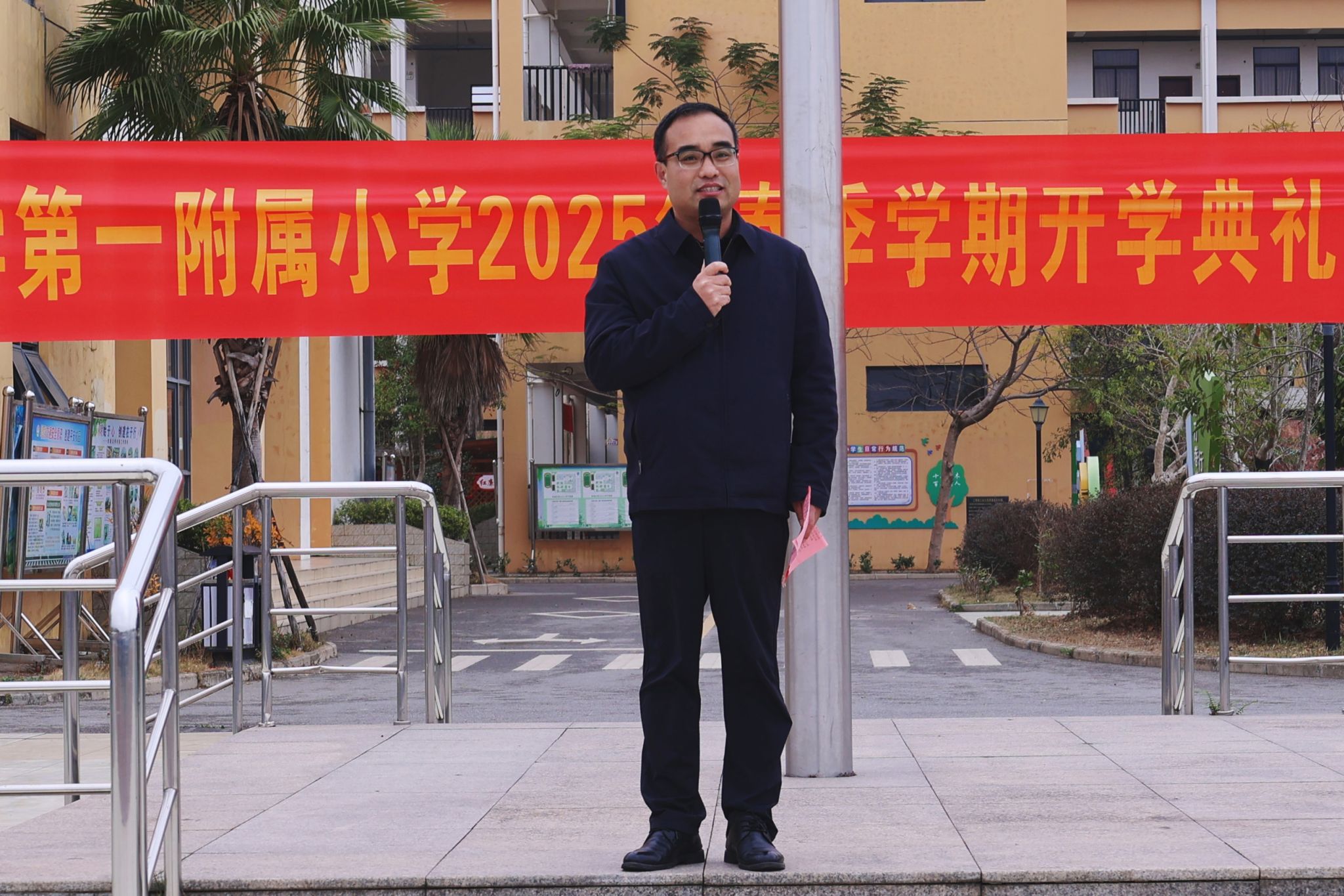 在开学典礼上,马秀明深情寄语,勉励老师们以学高为师、身正为范为准则,坚守职业道德,坚决不触碰师德师风红线,做学生成长路上的引路人;勉励同学们要珍惜时光,好好学习,天天向上,不断追求进步与成长;并祝愿附小在未来发展道路上乘风破浪,取得更加瞩目的成绩。