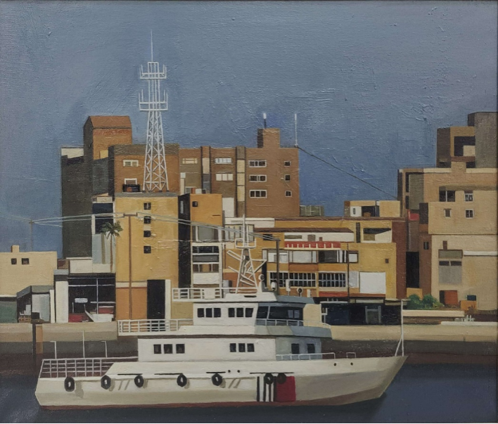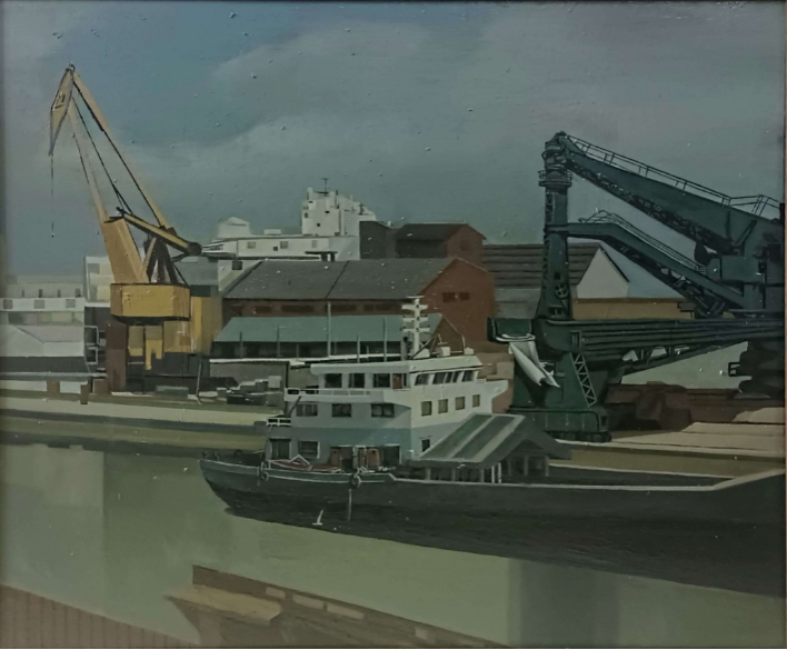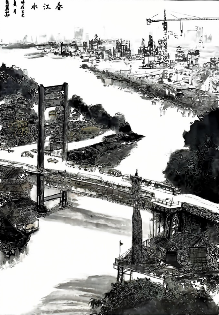 教师鲁敏水彩作品《建设中的新桥和运河》