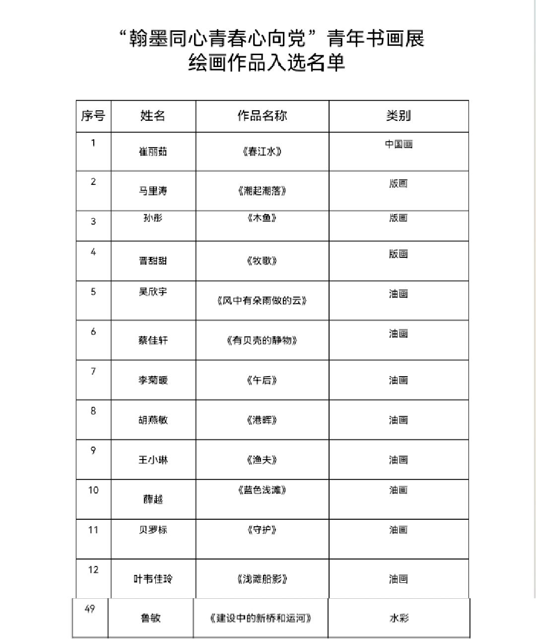 近日,“翰墨同心 青春心向党”2025年钦州市青年书画展评选结果揭晓,beat365官网陶瓷与设计学院师生13件以“海洋”“平陆运河”为创作主题的作品成功入选,其中教师作品1件、学生作品12件。