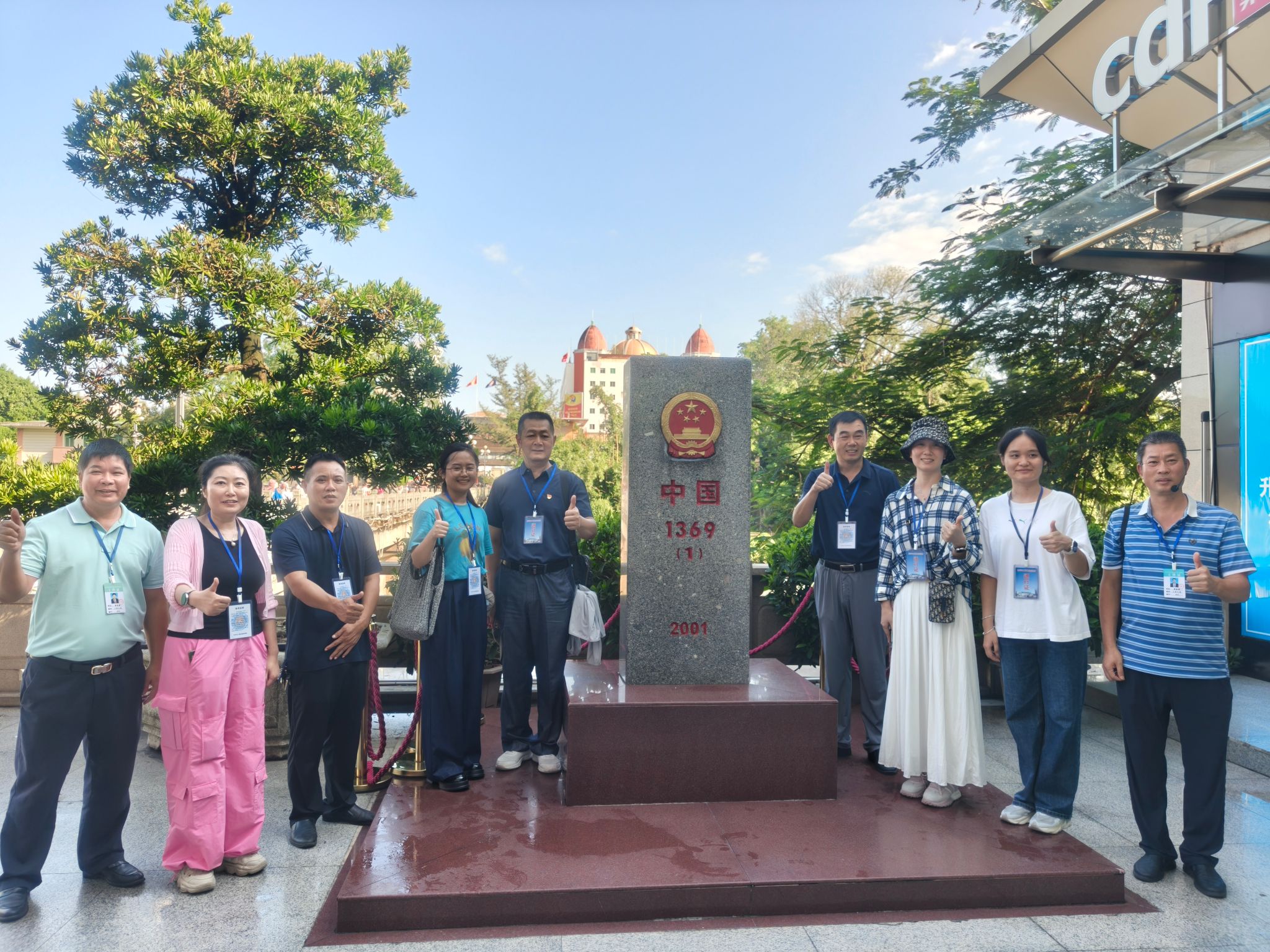 在中越友谊公园,老师们驻足中越人民革命烈士纪念碑前,深入了解中越两国人民在解放斗争中用鲜血凝成的友谊,感受“两国一域、睦邻友好”的发展智慧和边疆和谐图景。走进钟竹筠纪念馆,其中珍贵史料、复原场景与讲解,生动再现了“南路革命之花”钟竹筠投身革命、英勇就义的英雄事迹,令老师们数度动容。侨批博物馆中,泛黄的侨批信件及“筹款购机卫粤收据”等实物,串联起近代东兴华侨“跨国谋生仍心系家国”的壮阔历史,老师们读懂了“一纸侨批,万缕乡愁”的家国情怀。在口岸界碑前,老师们驻足凝视镌刻的“中国”字样,深刻体会“国土不可分割”的厚重意义,体悟“国土一寸不可失”的庄严。东兴边贸互市区内一片繁忙景象,使老师们感受到边疆“开放发展、共促繁荣”的时代活力。在竹山村“大清国一号界碑”前,教师们回顾了边疆治理的历史变迁与当代实践,感悟“守土有责、护边有功”的使命担当。