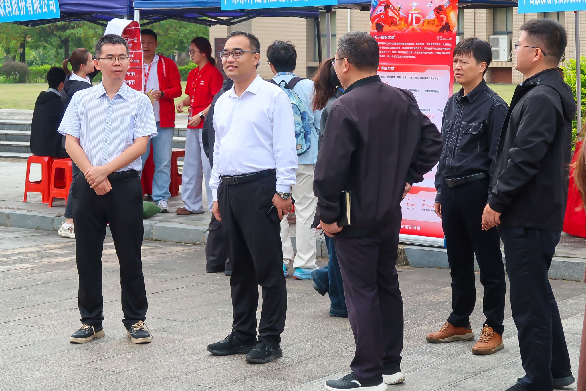 校党委常委、副校长马秀明率学生工作处和经济管理学院领导班子,逐一走访企业展位,详细了解用人单位岗位需求、招聘标准及人才培养路径,并与毕业生亲切交流,询问求职意向与就业准备情况。他鼓励毕业生树立正确的就业观,把握机遇、发挥优势,积极争取心仪岗位。(黄梦婷 郭韩琳 摄)
