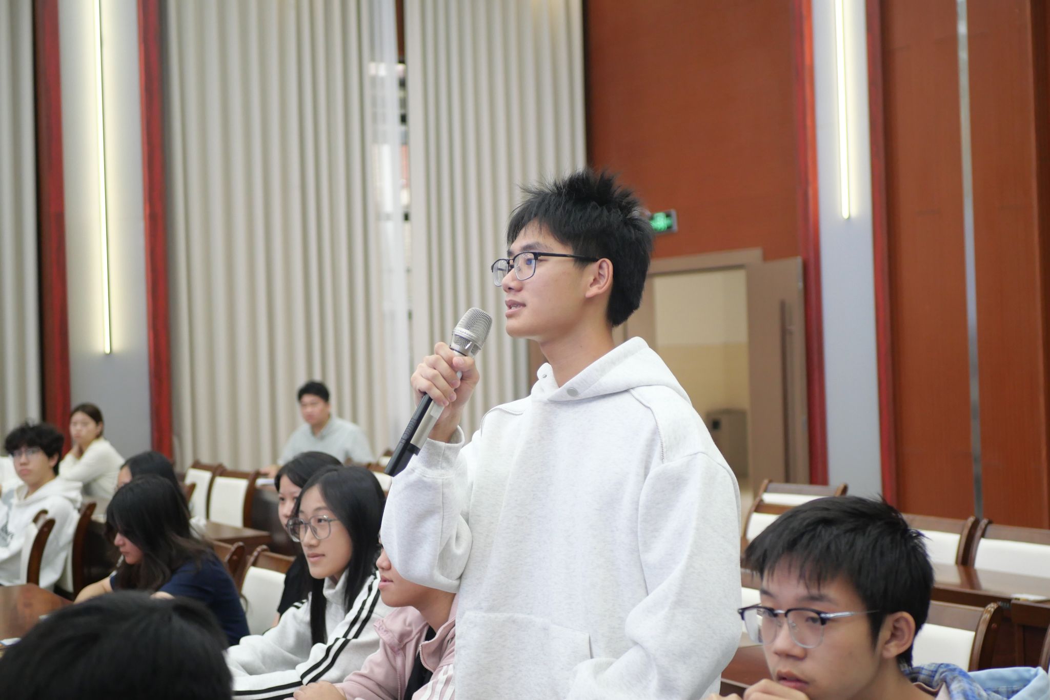曾铮围绕海空跨域无人航行器的研发与应用,系统介绍了其团队研发的“哪吒”系列海空跨域航行器,包括哪吒I至Ⅳ代、哪吒-F、哪吒-X等型号的研发思路与技术特点,重点展示了相关创新成果,并详细阐述了该类航行器在海空立体观测、跨介质通信中继及海事应急搜救等领域的应用前景。在互动交流环节,在场学生纷纷举手提问,曾铮一一耐心解答。