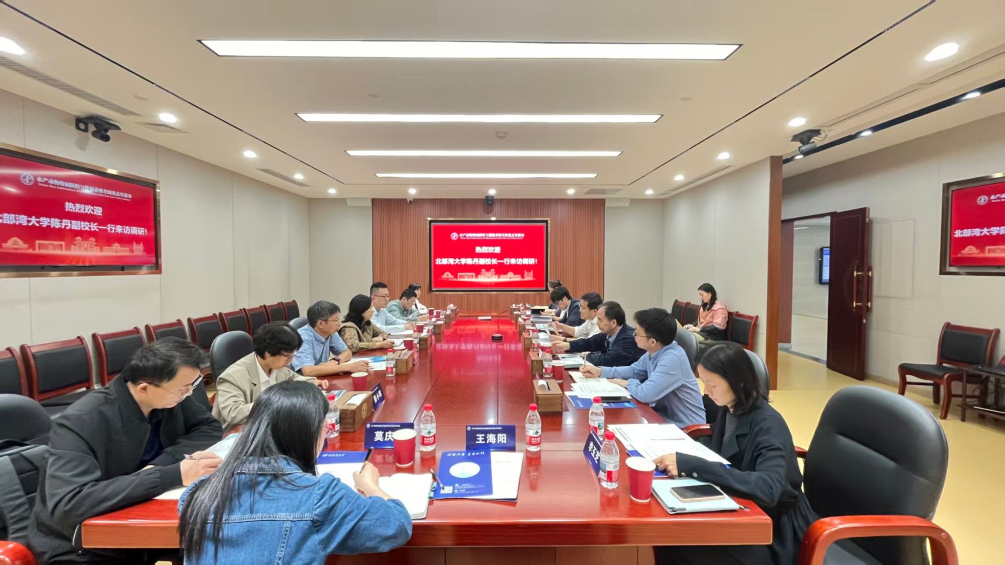 在中山大学,陈丹一行实地考察了水产动物疫苗与健康养殖全国重点实验室、中国东盟海水养殖技术“一带一路”联合实验室,深入了解粤港澳大湾区在海洋科技领域的先进经验。中山大学相关负责人介绍了该校科技创新情况及实验室发展历程。双方围绕海洋牧场种质资源、健康养殖、养殖设施与工程装备、智慧海洋信息技术等议题深入交流,为“两湾”海洋科技联动发展奠定基础。