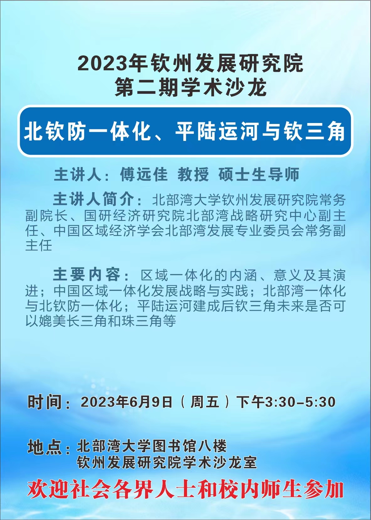 【学术沙龙预告】2023年钦州发展研究院北部湾沙龙第二期