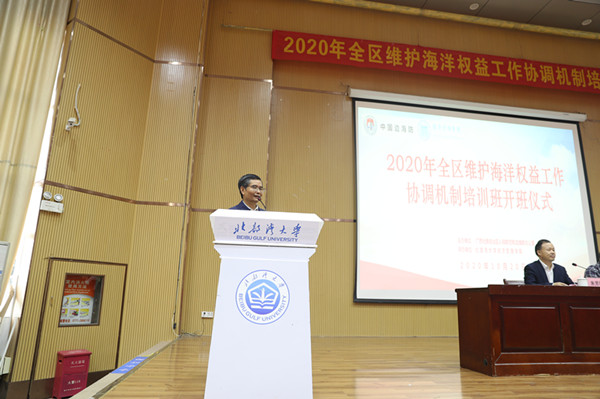 学校党委副书记陈锦山,自治区人防和边海防办公室副主任黄小宁、自治区人防和边海防办公室海洋权益处处长张绍华等人出席培训班开班仪式,经济管理学院院长朱芳阳主持。