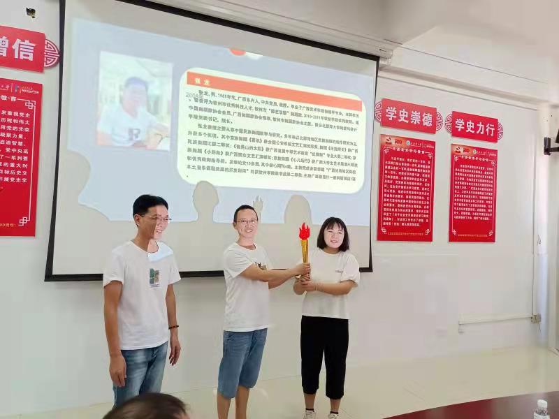 9月10日,陶瓷与设计学院在301会议室举行“立德树人,薪火相传”教师节座谈会暨新教师入职仪式。学院特聘教授、中国工艺美术大师、国家级非物质文化遗产项目陶器烧制技艺代表性传承人李人帡大师,知名书法家、广西书法家协会理事、学院退休教师王传善教授,钦州市优秀科技人才、“德艺双馨”舞蹈家、学院原党委书记张龙教授3位老教师应邀参加座谈会。学院党委书记古雅峰,院长周晓峰出席座谈会。