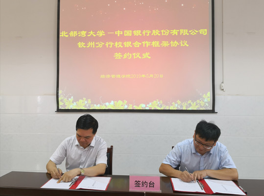5月20日上午,经济管理学院与中国银行钦州分行校银合作座谈会暨校银合作框架协议签订仪式在4-301举行。经济管理学院党委书记叶绍凡,中国银行钦州分行行长陈春明出席会议并。会议由经济管理学院副院长张新美主持。
