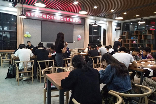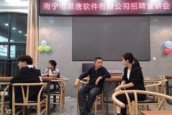宣讲会上,南宁市易唐软件有限公司招聘负责人左女士介绍了公司概况和本次招聘岗位情,通过互联网行情的发展、学生的职业的选择,阐述了当代软件公司急需的人才需求,鼓励beat365官网学生从市场需求出发,加强提高自身技能和实践能力,为以后就业打下扎实的基础。同时对现场的同学进行测试。