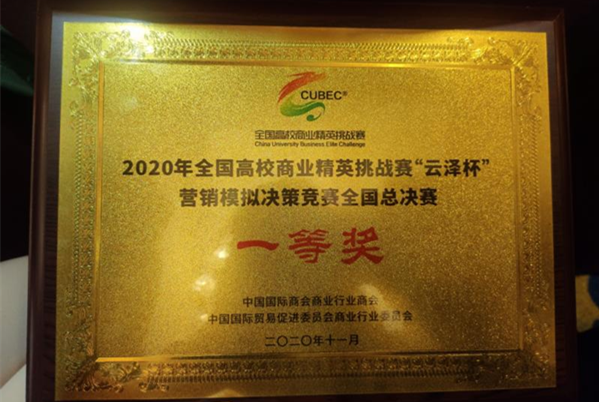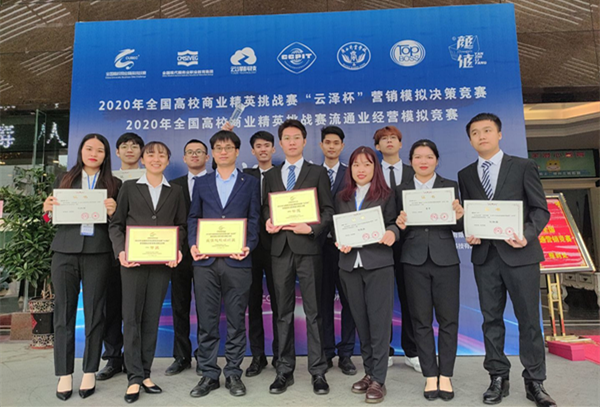 11月28日,由中国国际商会商业行业商会和中国国际贸易促进委员会商业行业委员会共同主办,中国国际商会商业行业商会、广西商业学校承办的“2020年全国高校商业精英挑战赛营销模拟决策竞赛精英赛”在广西柳州顺利进行,beat365官网经济管理学院学子代表beat365平台官方网站参赛的“酸菜鱼队”获得季军。同时还在2020年全国高校商业精英挑战赛营销模拟决策竞赛总决赛中获得“最佳院校组织奖”“一等奖”;“百事可乐队”“酸菜鱼队”获“2021年亚太企业经营案例分析赛”的“入围奖”。