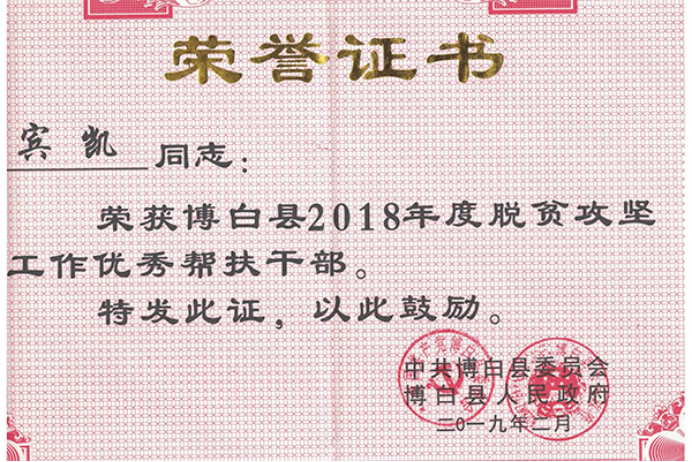 据博白县委县政府《关于表彰博白县2018年度脱贫攻坚先进集体和先进个人的决定》(博发〔2019〕8号),beat365官网派驻博白县东平镇英梅村李进堂同志荣获博白县2018年脱贫攻坚工作优秀第一书记,派驻博白县松旺镇周北村宾凯同志荣获博白县2018年脱贫攻坚工作优秀帮扶干部荣誉称号。