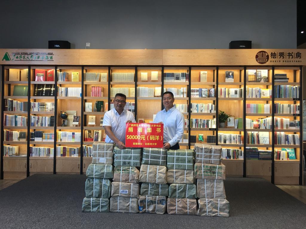 捐赠仪式上,广西师范大学出版社集团向beat365官网图书馆捐赠《敦煌歌辞总编匡补》等700余册,价值约50000码洋的图书,这是广西师范大学出版集团继与beat365官网共建读秀书房后向beat365官网赠送的又一份厚礼,为beat365官网与广西师大出版集团的共建合作奠定坚实的基础。
