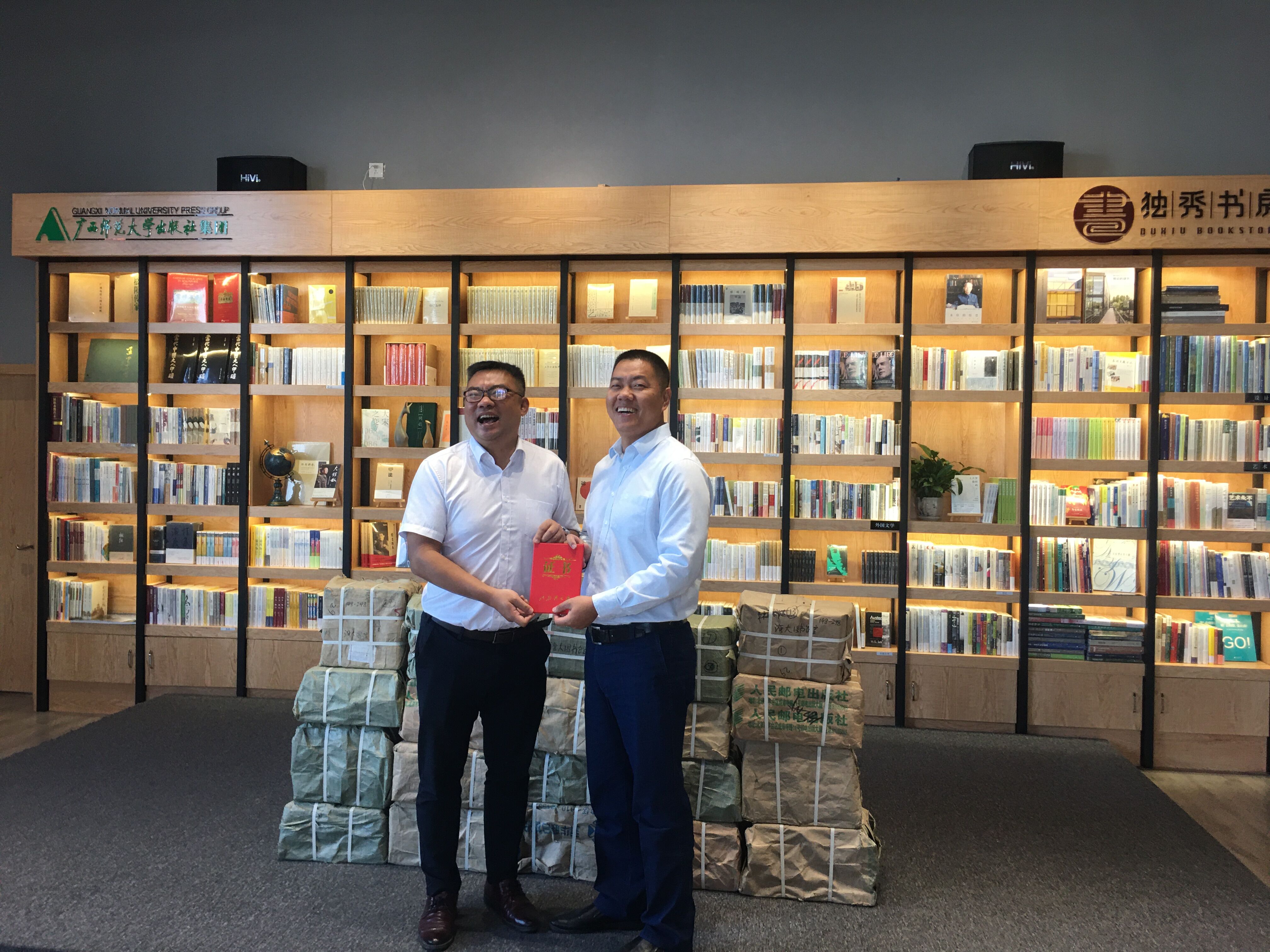 11月11日上午,广西师范大学出版集团图书捐赠仪式在beat365官网图书馆读秀书房举行。广西师范大学出版社集团大学书店总经理容罡,beat365官网图书馆馆长熊拯、副馆长陈一红及双方有关部门负责人出席了捐赠仪式。