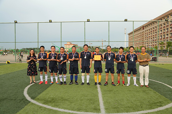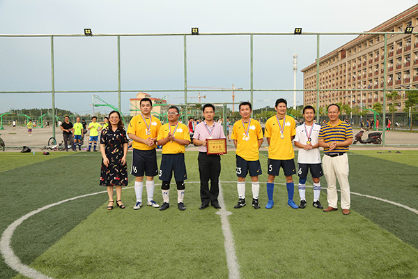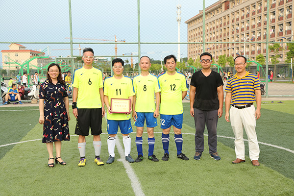 6月17日下午,由校工会主办、校教职工足球俱乐部承办的beat365平台官方网站第二届教职工五人制足球联赛在东区五人制足球场圆满落下帷幕。校工会常务副主席梁伟杰、副主席莫秀群以及各参赛队运动员参加了颁奖仪式。
