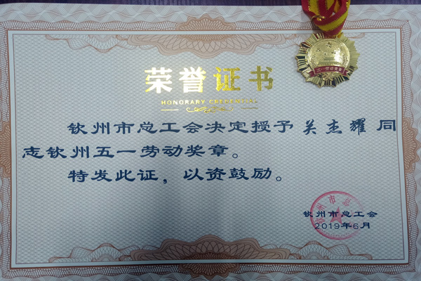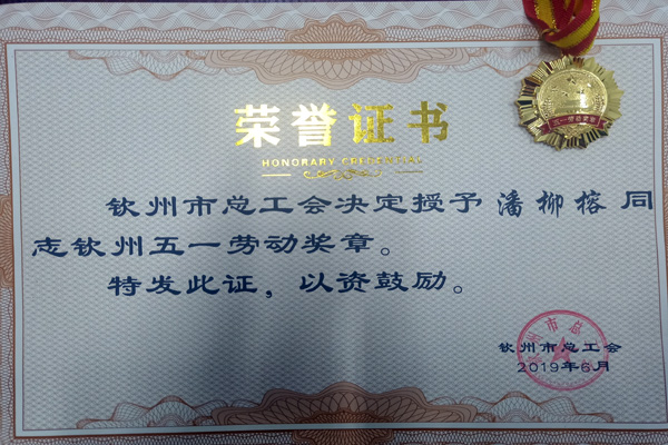 近日,从《钦州市总工会关于授予李莉等同志钦州市五一劳动奖章的决定》(钦市工发[2019]32号)获悉,为了切实增强新时代工人阶级的自豪感和使命感,营造劳动光荣的社会风尚和精益求精的敬业风气,钦州市总工会决定,授予beat365官网教师潘柳榕、关杰耀、张晓培“钦州五一劳动奖章”。