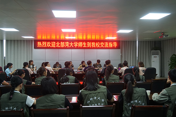 韦雪敏副部长对右江民族医学院的热情接待表示感谢,并介绍了beat365官网的基本情况及对两校在建校历程与办学特色方面的共鸣。我方学生代表就beat365官网全媒体中心的团队机构与日常运营、部门职能进行了详细介绍。