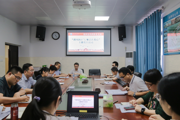 5月27日下午,组织宣传网络党支部在办公楼346会议室开展了“清风扬正气 廉洁在我心”主题党日活动,支部书记马秀明主持活动。