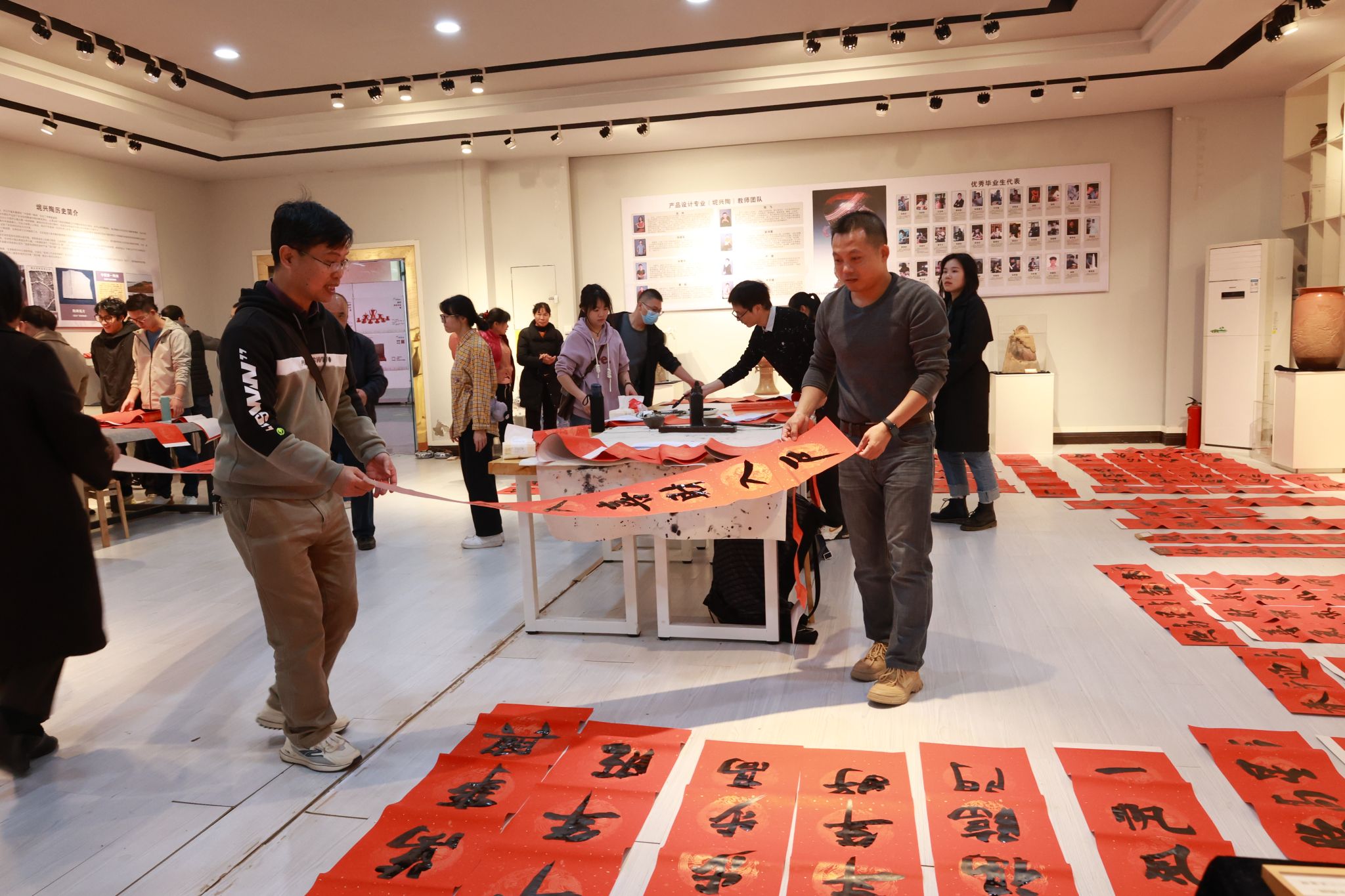 学校近十位书法家挥毫泼墨,把对新年的诚挚祝愿和美好心愿融入笔墨之中,现场创作了六百余副春联、福字,用精彩的书法艺术书写出新年的新气象、新风貌。广大师生在墨香中感受日渐浓郁的浓浓年味,在领取春联的同时,也领略到了传统书法文化的魅力。(郑毅 摄)
