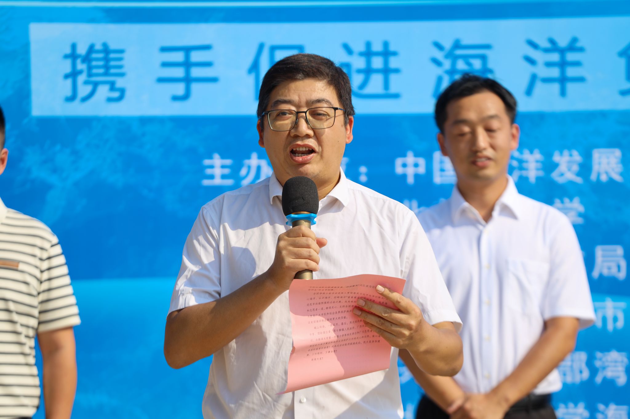 市海洋局副局长何启林总结了钦州市近年来海洋保护事业的发展情况,鼓励青年志愿者们积极投身到海洋保护事业中去,并宣布活动正式启动。