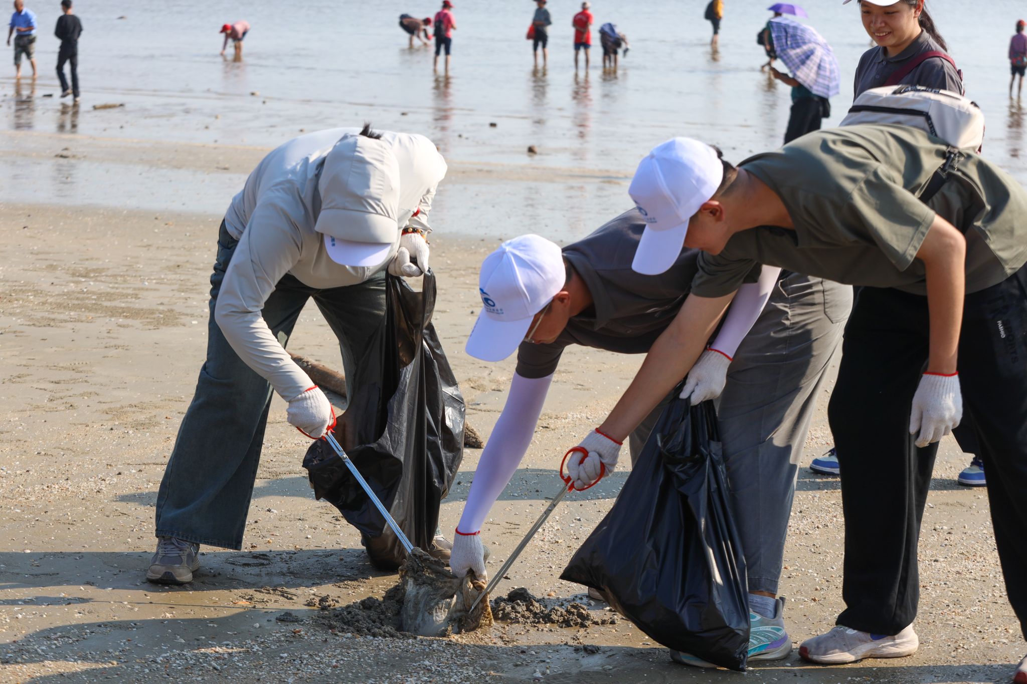 据悉,由中国海洋发展基金会发起的全国净滩公益活动,今年是学校作为钦州分会场承办的第四年,今年活动的主题是“发展新质生产力,促进海洋负排放”,旨在号召全社会关注和改善海洋垃圾与污染,通过组织多样化、融合化、群众化的特色活动,让发展蓝色经济、保护生态环境的理念在全社会生根、发芽、传播。(张靖佳 傅葛怡 阮弸峻 摄)