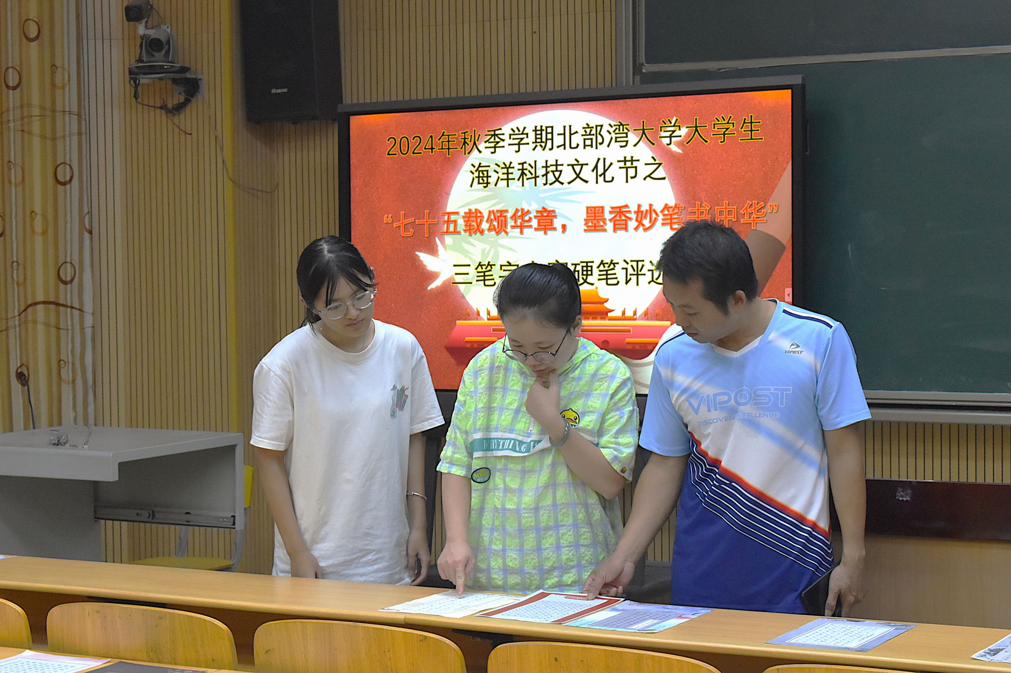 10月22日下午,由共青团beat365平台官方网站委员会主办、beat365平台官方网站教育学院团委学生会承办的2024年秋季学期beat365平台官方网站大学生海洋科技文化节之“七十五载颂华章,墨香妙笔书中华”三笔字大赛圆满落幕。