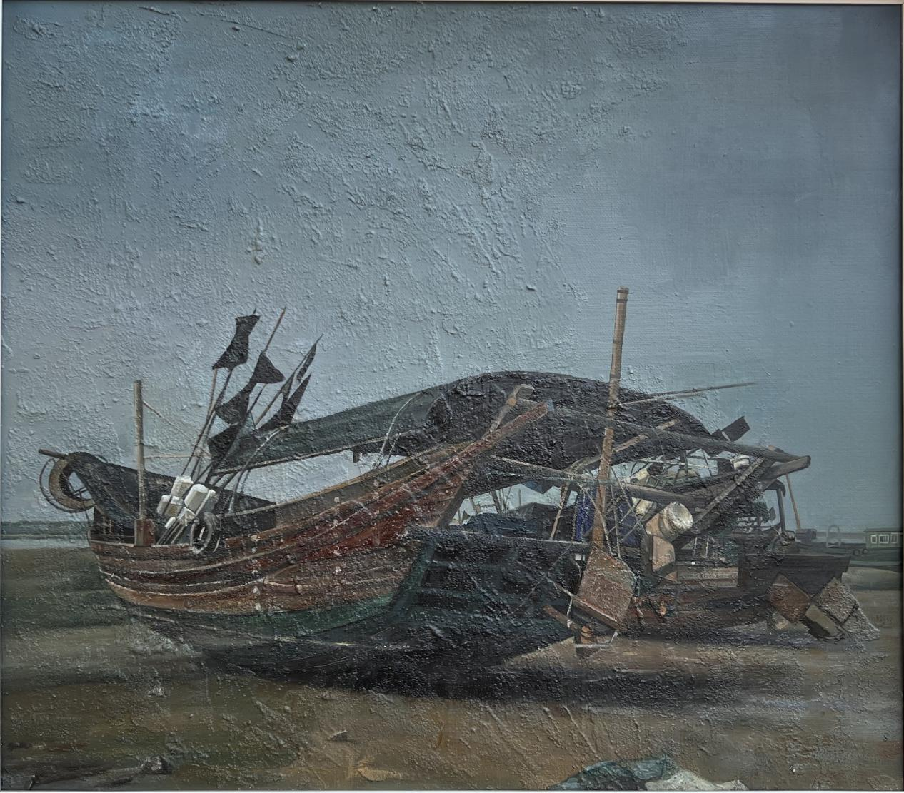 梁羽茜作品:《渔舟·忆》(油画)70cm×80cm