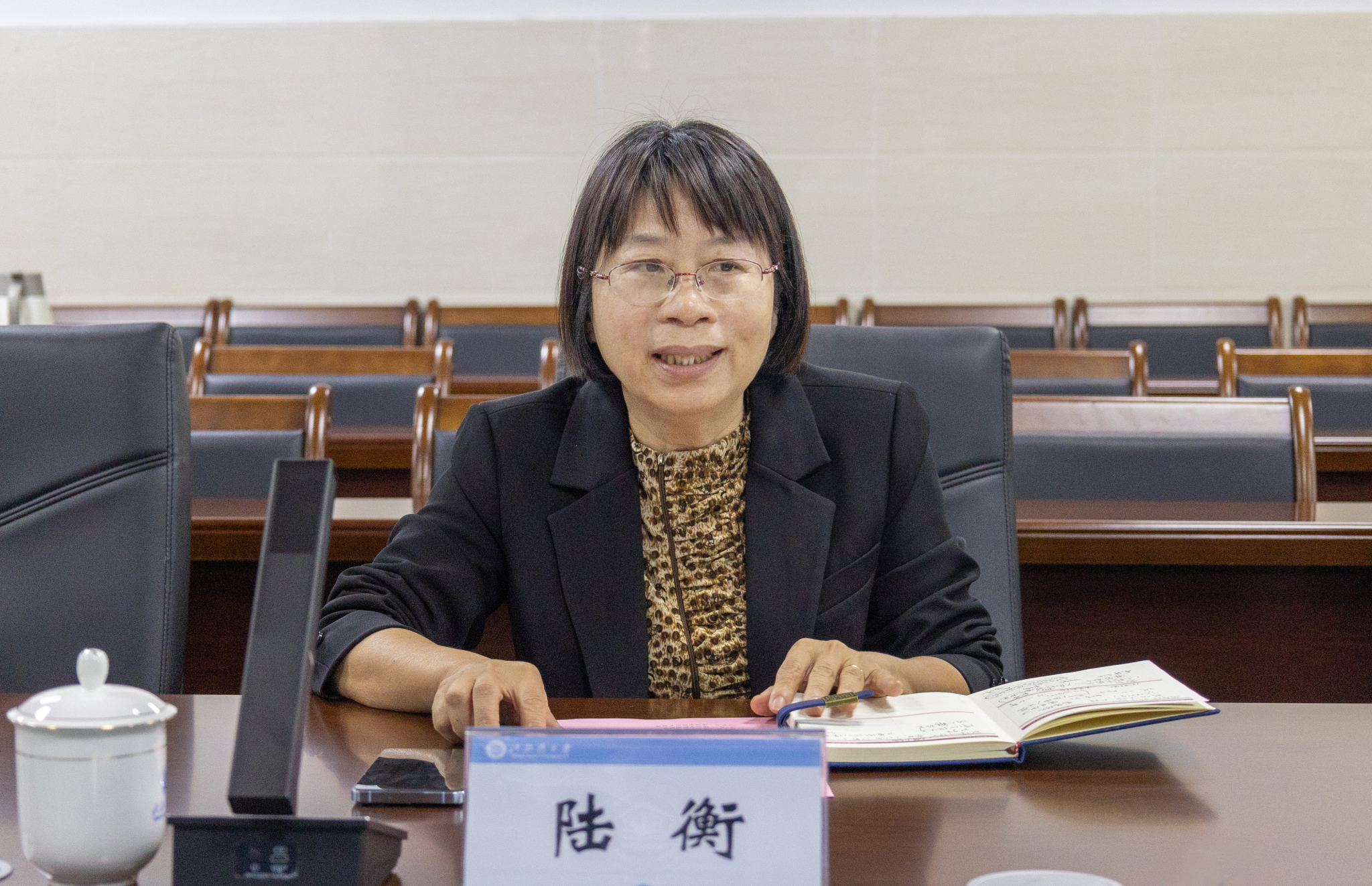 陆衡对王国进一行的到访表示欢迎,介绍了学校的办学特色与学科优势。她表示,学校始终积极服务国家海洋强国战略,持续强化海洋运输相关专业建设,积极推进校企合作,注重将企业资源融入课程教学与实践环节,提升人才培养质量。她希望以此次交流为契机,通过设立企业奖学金、聘任行业导师、共建实践基地等方式,进一步推动校企协同育人,建立长效合作机制。