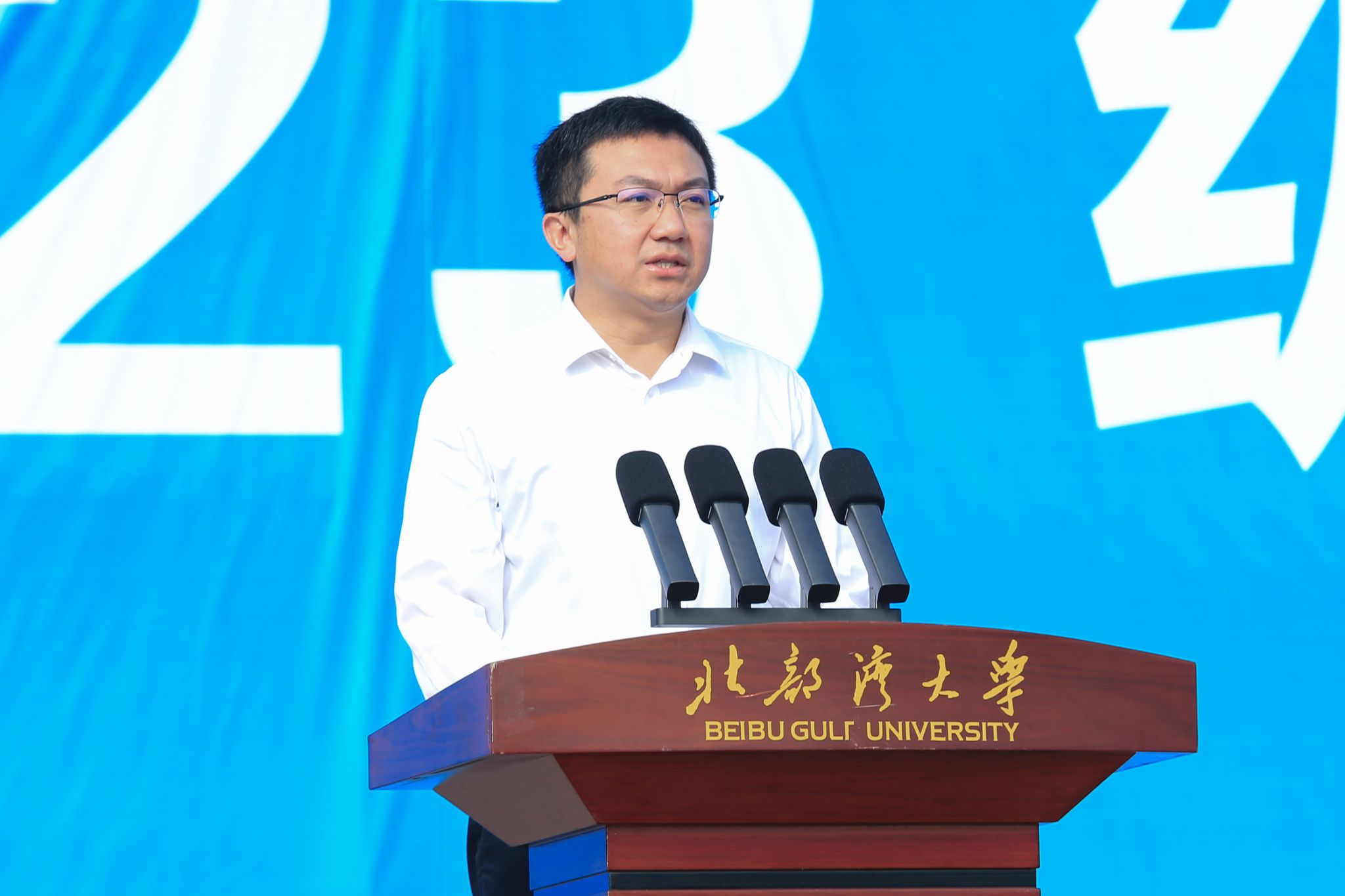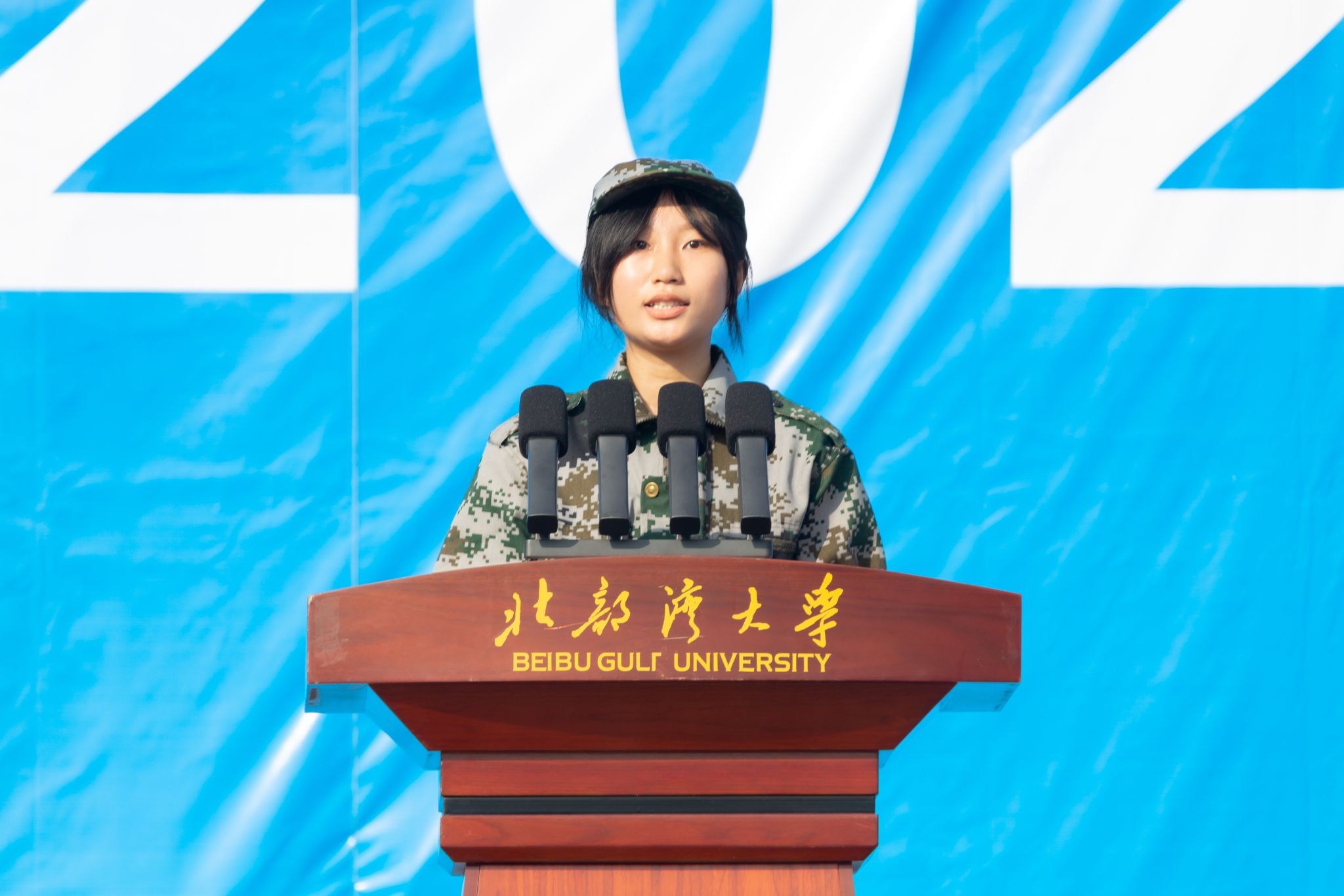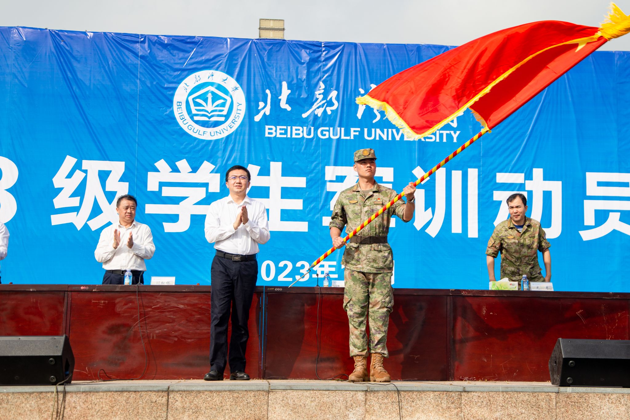 陈磊代表学校对钦州军分区的领导和教官表示热烈欢迎和衷心感谢。他指出,军训是深入贯彻党的二十大精神,全面贯彻落实党的教育方针、落实立德树人根本任务和新时代军事战略方针的需要,是推进学生德智体美劳全面发展、加强全民国防教育和加强国防后备力量的根本需求。他向同学们提出三点建议:一是提振精神气,端正态度作风,从思想上高度重视军训;二是严守铁的纪律,认真遵守军训纪律,维护军训秩序,走好每一个步伐,喊好每一个口号,做好每一个动作;三是养成优良作风,确保生活规律,内务整齐,树立beat365平台官方网站学子积极向上,朝气蓬勃的良好形象。
