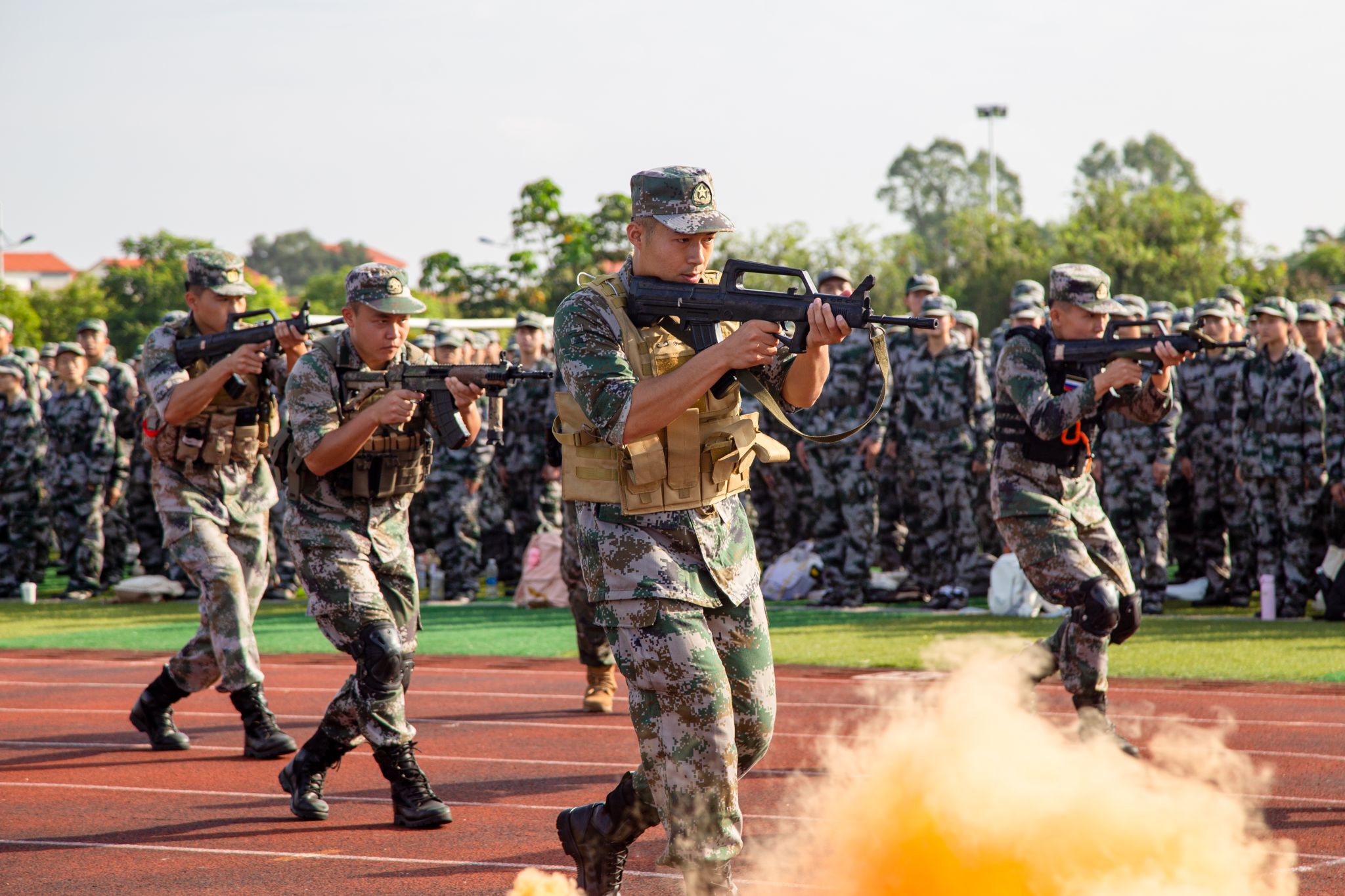 beat365官网25名2023年度退役复学学生代表进行了战术基础动作等科目表演。16名军训教官进行了军体拳、匍匐拳、格斗基本功等示范科目表演,展现了经过军营淬炼之后的飒爽英姿。他们的步伐铿锵有力,口号慷慨激昂,赢得了全场雷鸣般的掌声。