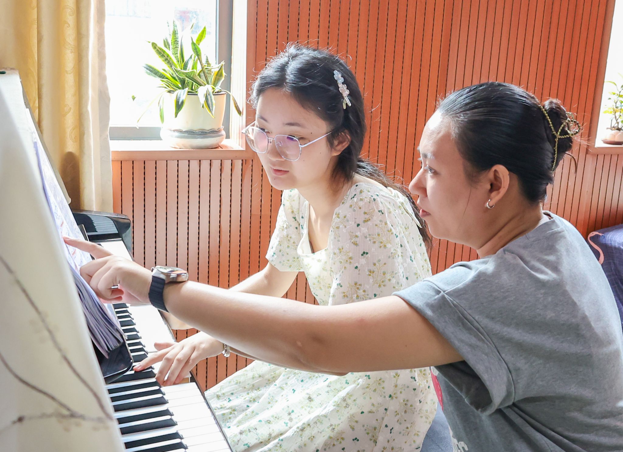 学生们说,张阳老师对他们的需求从来不会拒绝。“我很享受课堂教学,很享受跟学生的互动。孩子们渴望进步、渴望成长,他们选择我,是对我的信任,我不能辜负他们。”为了这一句不辜负,张阳随叫随到,常常在琴房一弹就是一中午,一呆就是一整天。指导一遍不行就两遍,两遍不行就三遍,直到她觉得“拿得出手为止”。