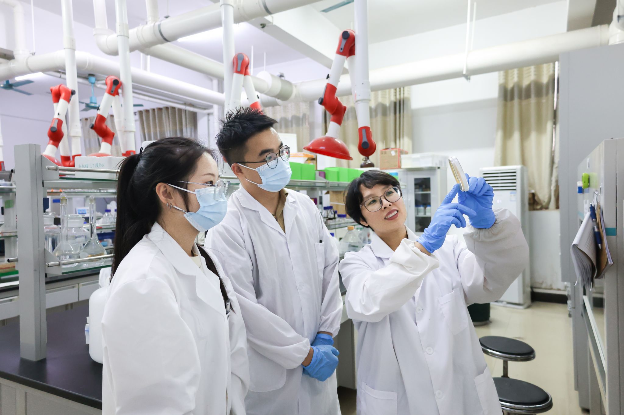 在培养研究生时,她时常以自身经历鼓励和指导学生勇于面对学习和科研中的挫折与失败。有不少学生在做PCR检测实验时,会遇到长时间做不出来的情况,这个卡点可能会持续一个星期,一个月,甚至半年时间。蔡小辉总是跟他们一起去面对,提示学生从细节入手,改进方式方法,逐点突破,直到问题解决。她说道:“实验成功时学生的笑脸总能给我巨大的成就感和继续前行的力量。我会在教学和实验的过程中让学生认识到严谨治学的重要性,科学研究差之毫厘谬以千里,如果治学态度马虎,科技创新就更无从说起了。”
