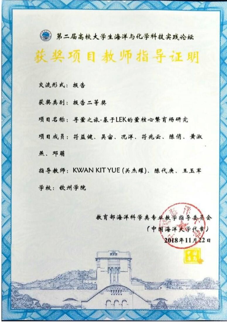 2.第二届高校大学生海洋与化学科技实践论坛报告二等奖;