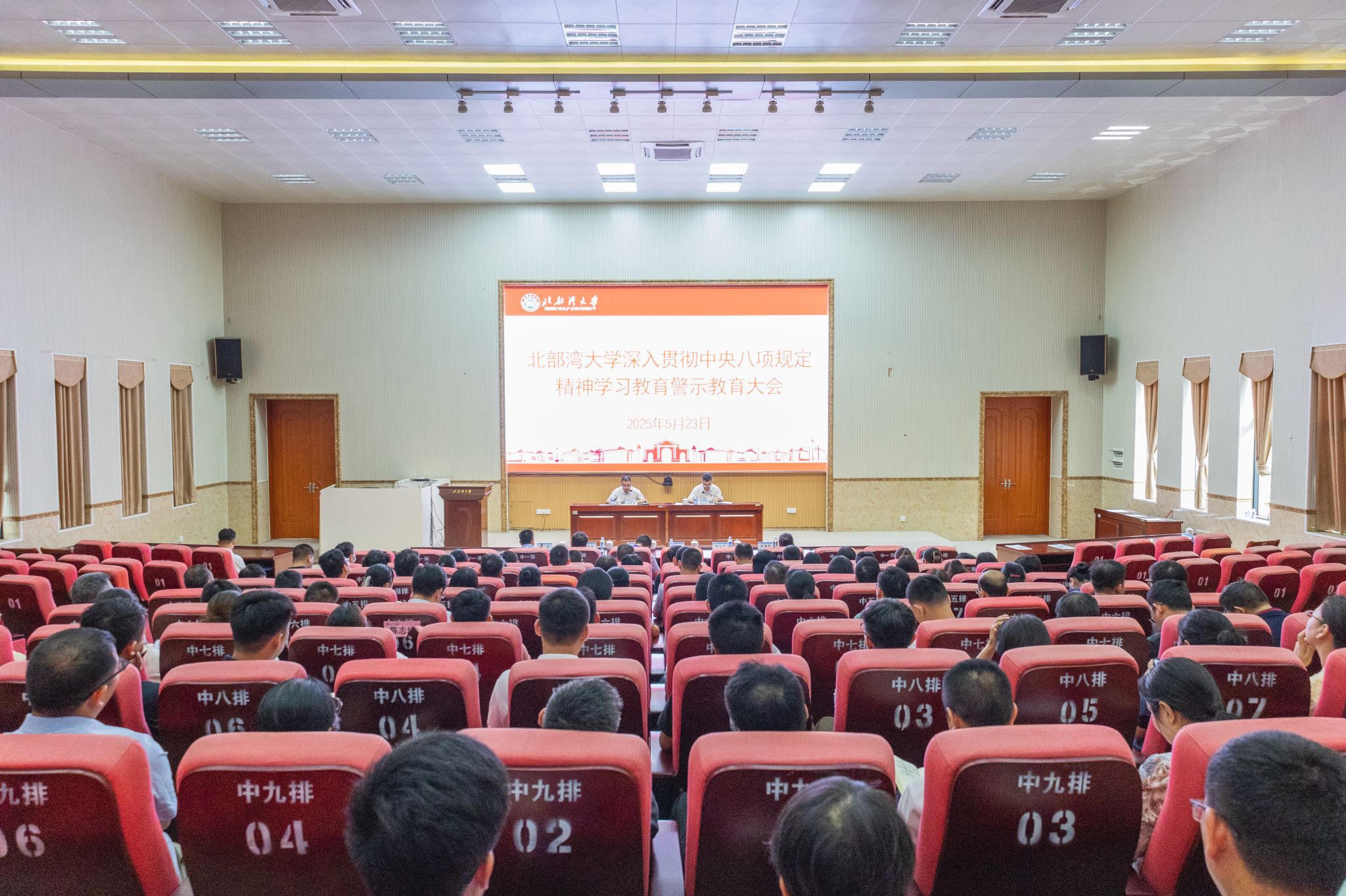 5月23日,学校在12号教学楼204报告厅召开深入贯彻中央八项规定精神学习教育警示教育大会。校党委书记徐华蕊出席会议并讲话,自治区纪委监委驻校纪检监察组组长、校党委常委、纪委书记谢立平主持。全体校领导、中层干部参加会议。